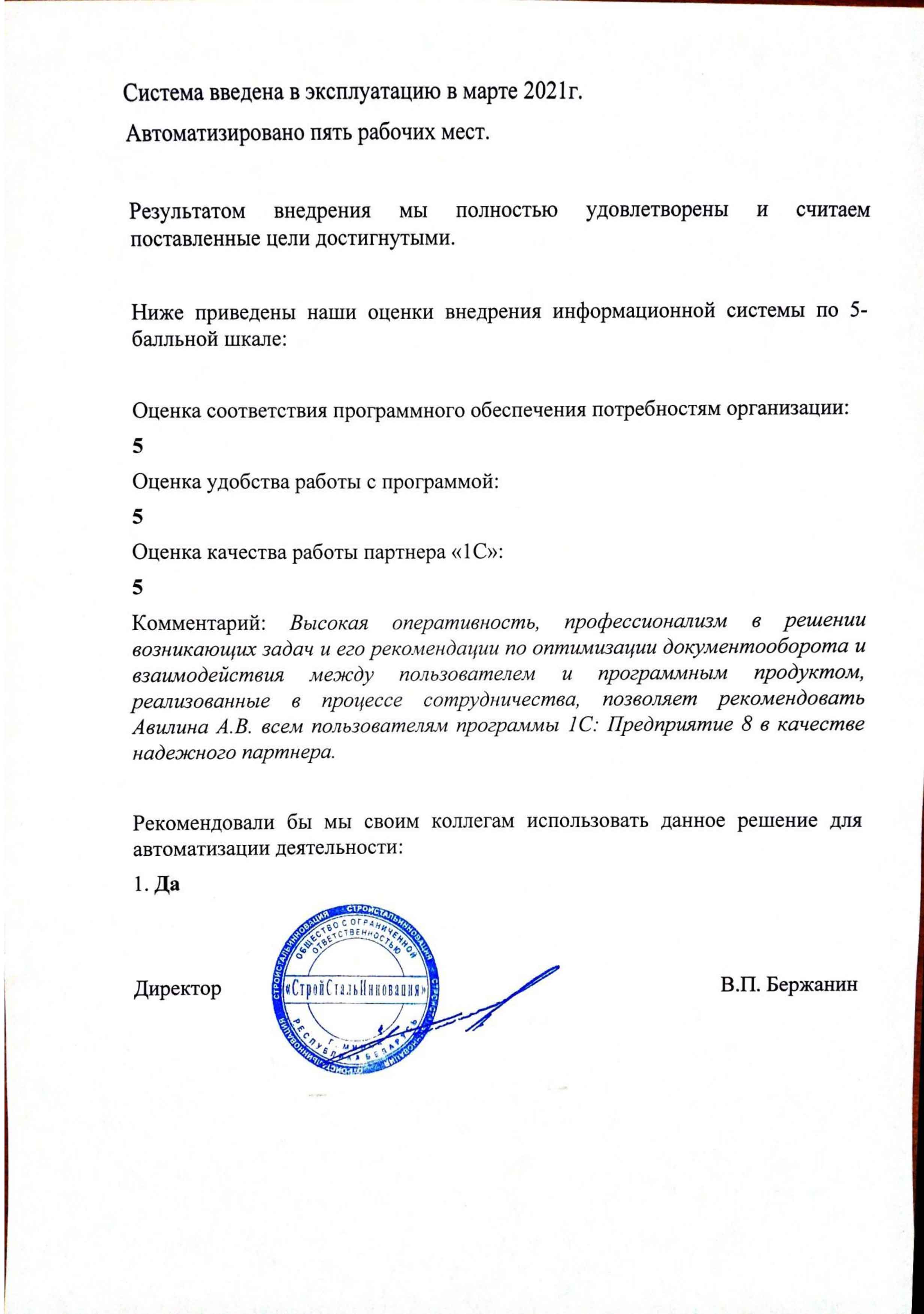 Дата внедрения: март 2021г.
